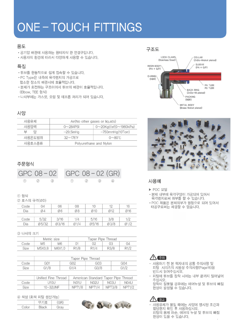 - 공기압 배관에 사용하는 원터치식 관 연결구입니다.