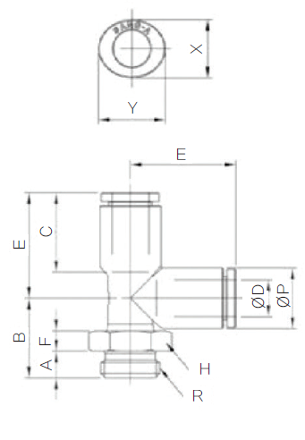 - 공기압 배관에 사용하는 원터치식 관 연결구입니다.