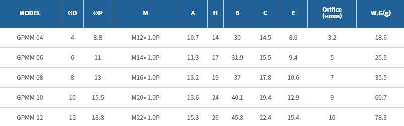 - PC type은 내측에 육각렌치의 가공으로 협소한 장소의 배관 시에 효율적입니다.