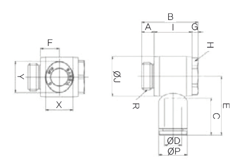 - 공기압 배관에 사용하는 원터치식 관 연결구입니다.