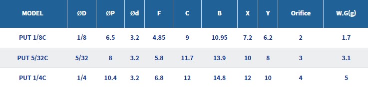 - 초소형 규격으로 재래형에 비해 체적은 40%, 외경은 20%가 더 소형화된 원터치 피팅입니다.