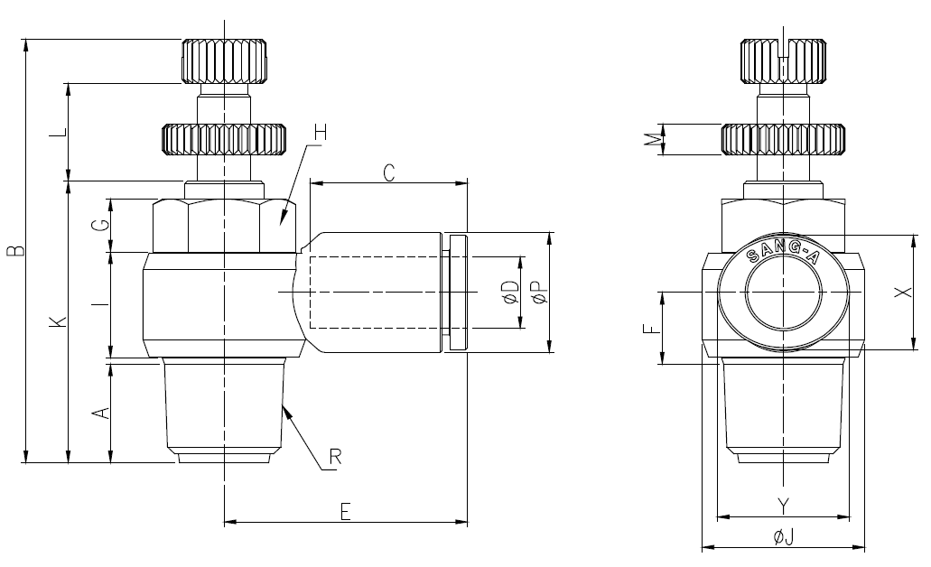 공기압용 구동 기기의 속도제어에 사용하는 밸브입니다.
