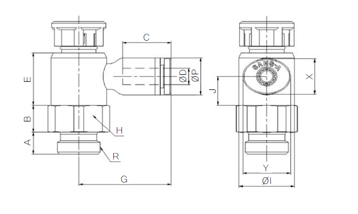 - 공기압용 구동 기기의 속도제어에 사용하는 밸브입니다.