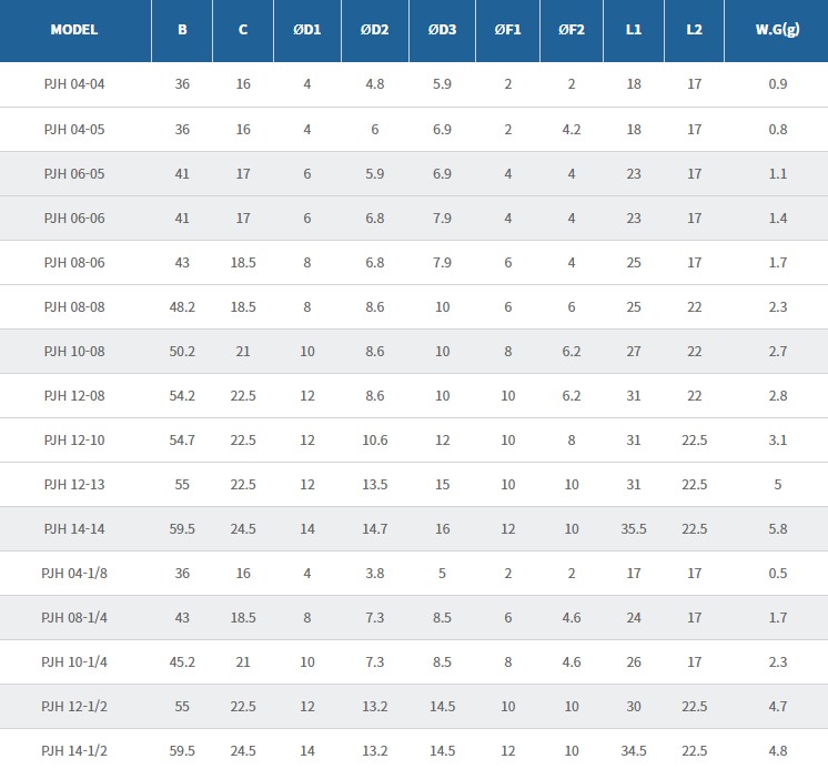 - PC type은 내측에 육각렌치의 가공으로 협소한 장소의 배관 시에 효율적입니다.