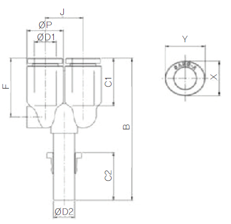 - 공기압 배관에 사용하는 원터치식 관 연결구입니다.