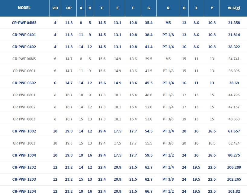 상아뉴매틱 CR-PWF 내화학피팅(MM/PT)