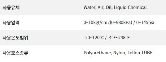 - 튜브의 체결방식이 강제 조임으로 진동부 및 요동이 심한 곳에서 탁월한 효과를 가집니다.