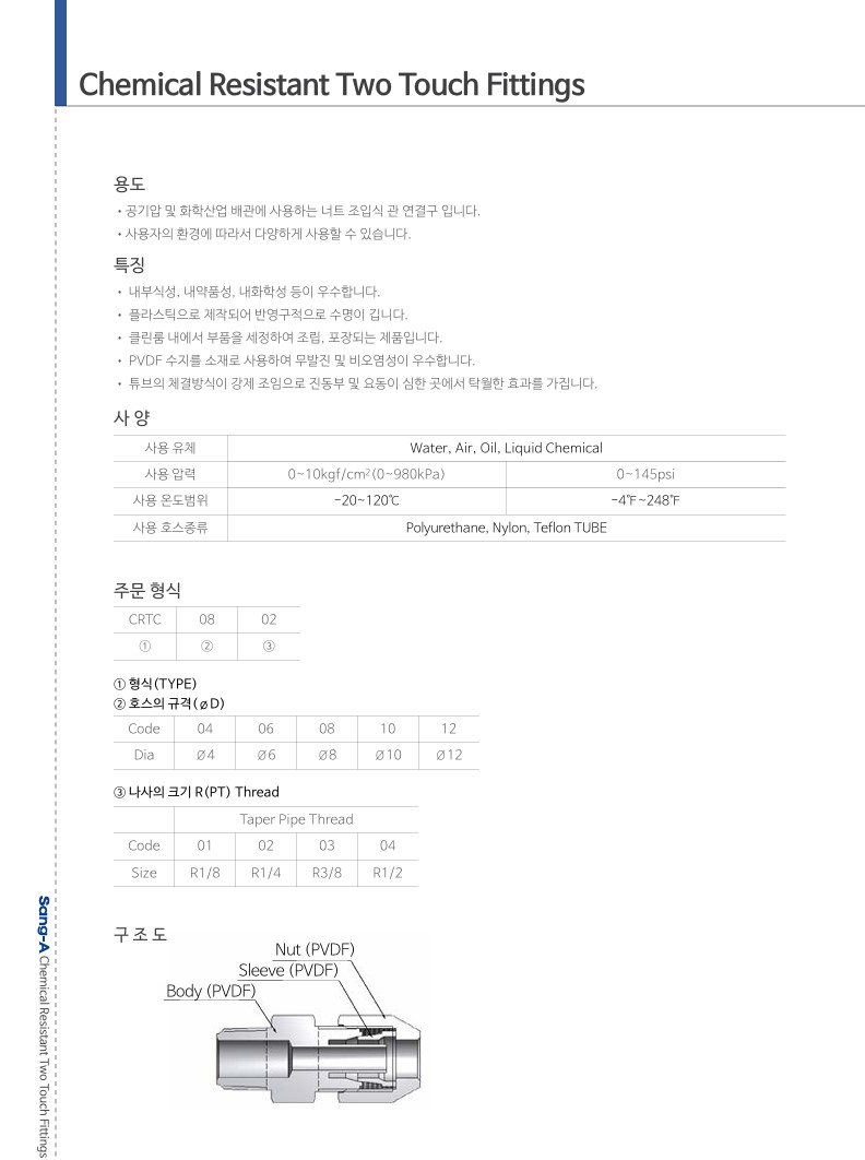 상아뉴매틱 CR-NUT 내화학투터치피팅(MM)