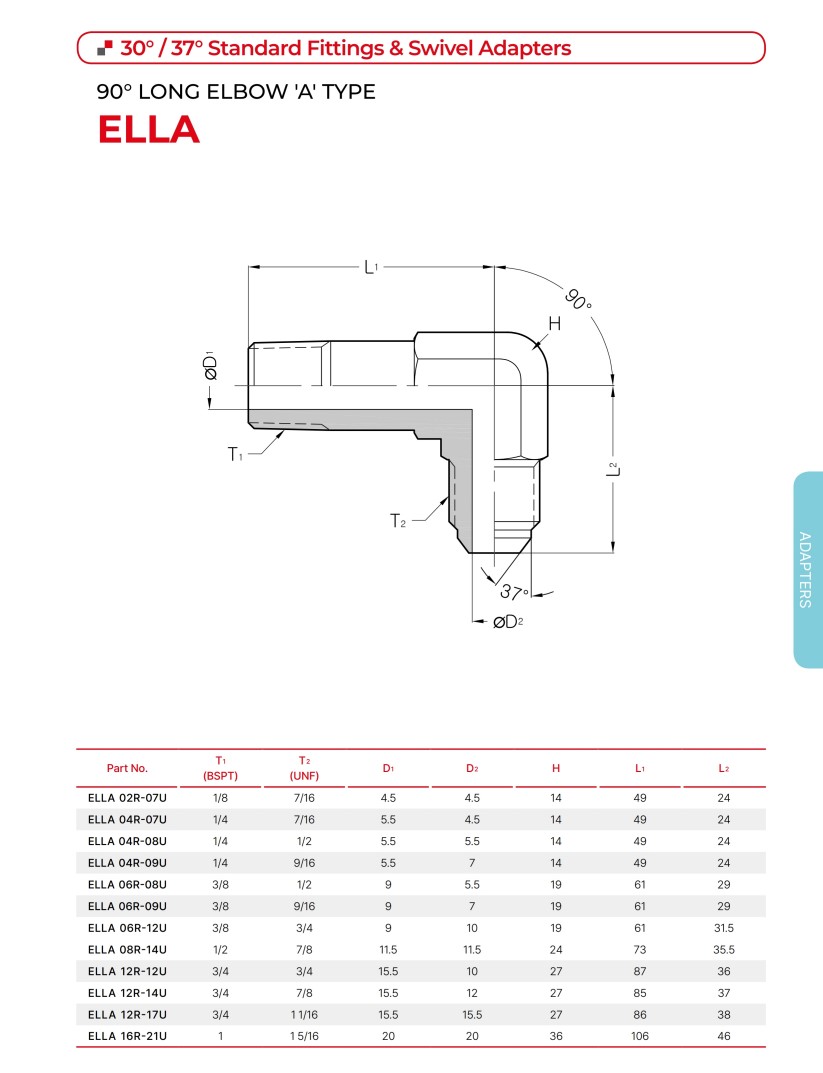 - 유압 배관에 사용되는 LONG ELBOW TYPE ADATER입니다.