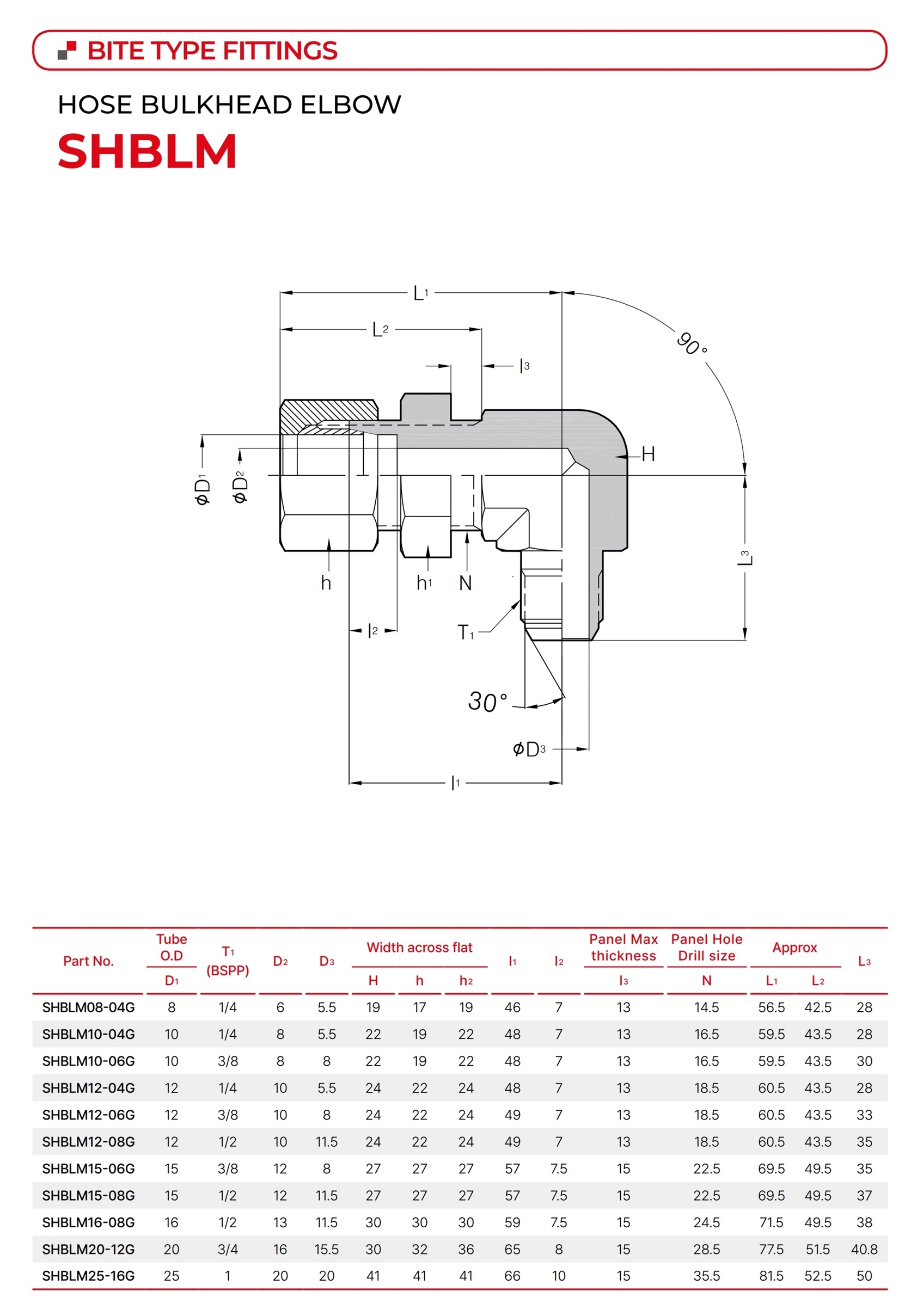 세광하이테크 SHBLM HOSE BULKHEAD ELBOW(MM/PF) - 1팩