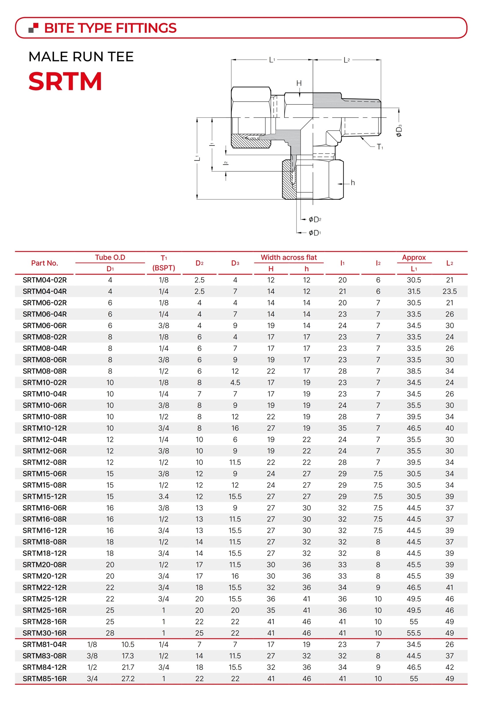 - 파이프/튜브 규격과 바이트 타입 규격이 동일한지 확인이 필요합니다.