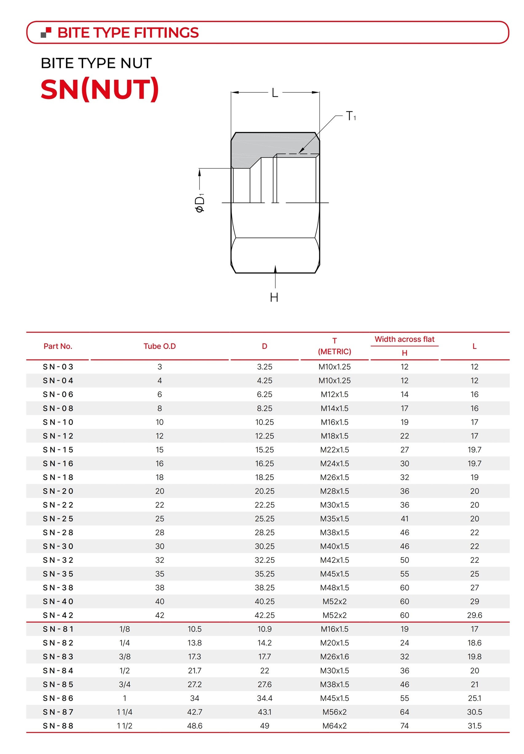- 유압 배관 바이트 타입 피팅 체결 시 필요한 너트(NUT) 입니다.