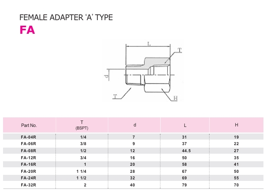 세광하이테크 FA FEMALE ADAPTER 'A' TYPE(PT)