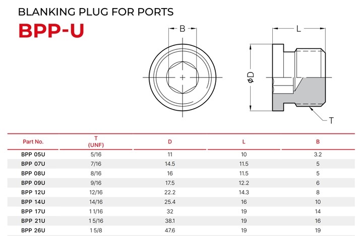 세광하이테크 BPP-U BLANKING PLUG FOR PORTS(UNF)