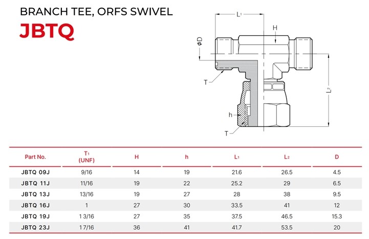 세광하이테크 JBTQ BRANCH TEE, ORFS SWIVEL(UNF)