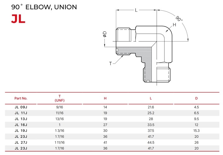 세광하이테크 JL 90도 ELBOW, UNION(UNF)