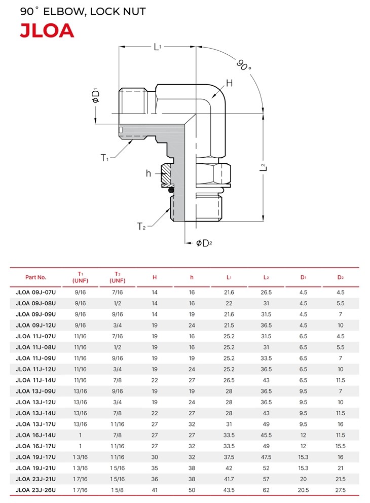 세광하이테크 JLOA 90도 ELBOW, LOCK NUT(UNF/UNF)