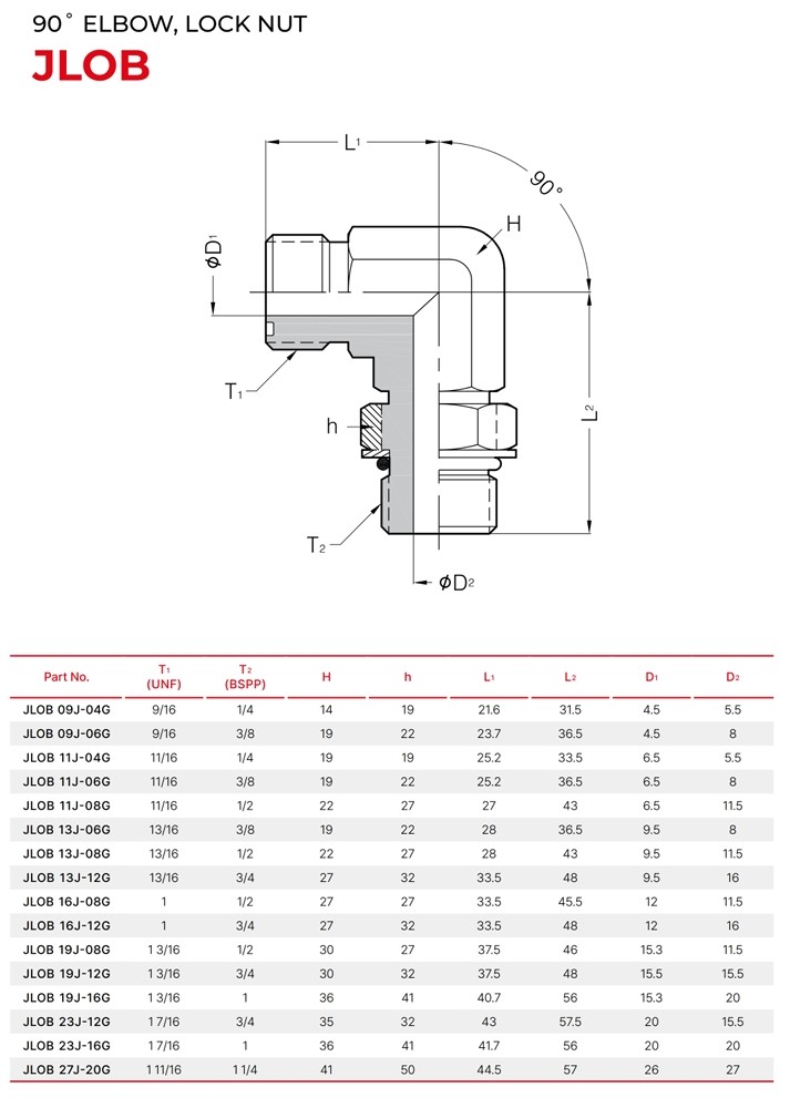 세광하이테크 JLOB 90도 ELBOW, LOCK NUT(UNF/PF)