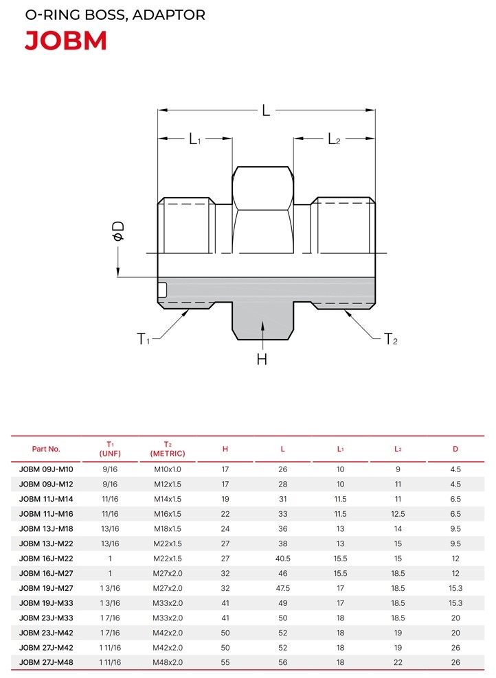 세광하이테크 JOBM O-RING BOSS, ADAPTOR(UNF/MM)