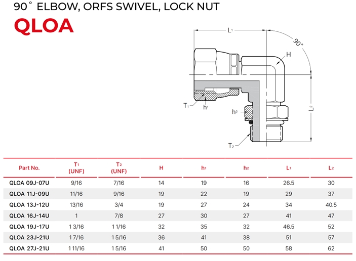 세광하이테크 QLOA 90도 ELBOW, ORFS SWIVEL, LOCK NUT(UNF/UNF)