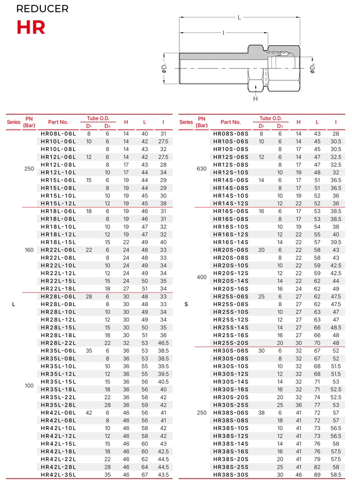 - 유압 배관에 사용되는 파이프/튜브 타입 딘 피팅입니다.